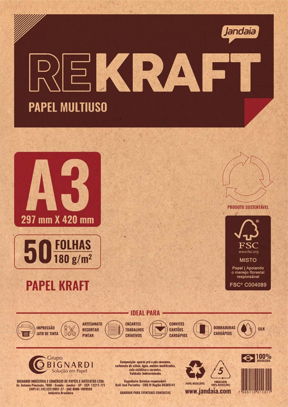 PAPEL REKRAFT A3 180G CX C/20 PT C/50 FLS