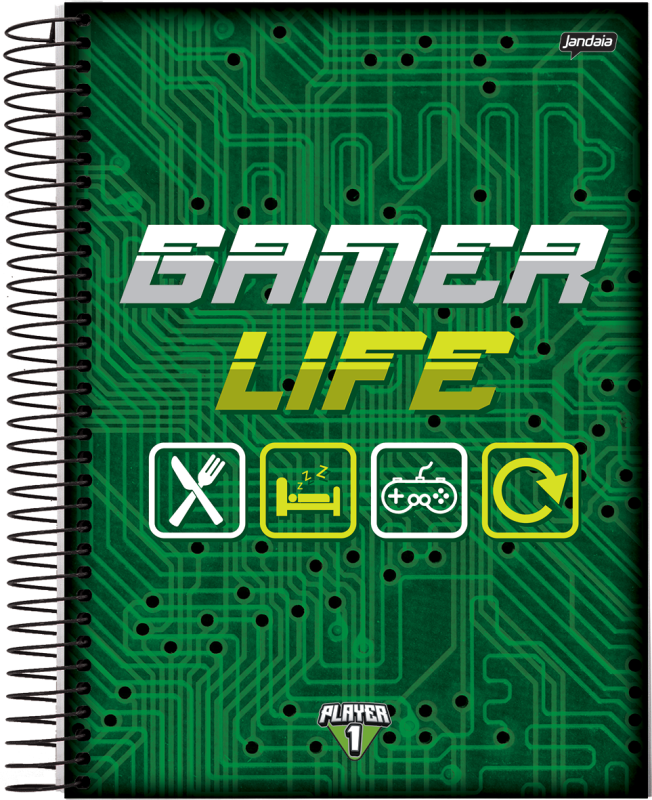 CADERNO ESPIRAL UNIVERSITÁRIO CAPA DURA 10 MATÉRIAS 160FLS 04/PT PLAYER 1 FSC