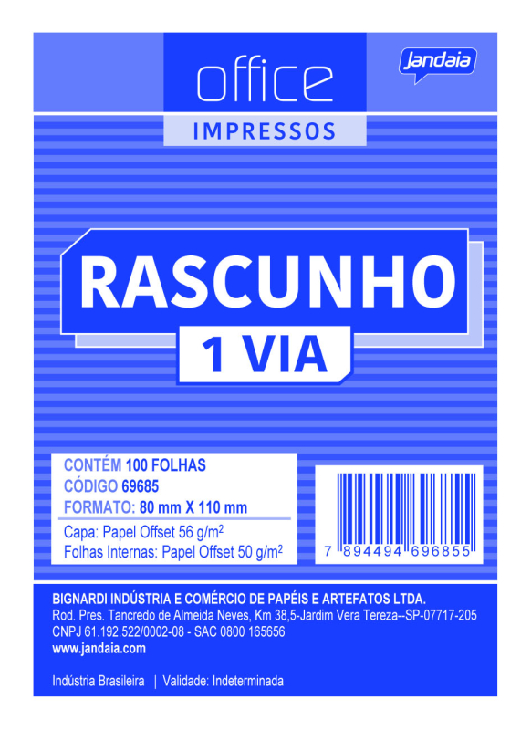BLOCO RASCUNHO 80X110MM 1 VIA 100FLS 20/PT OFFICE IMPRESSOS