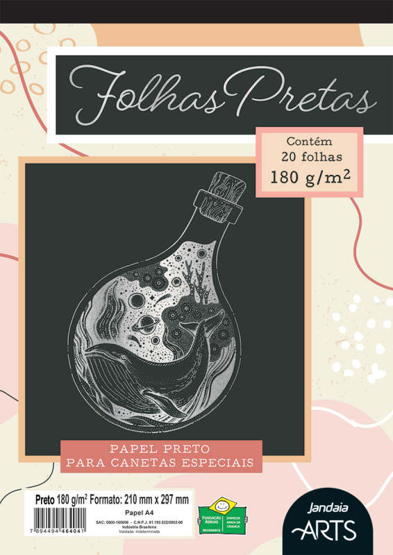 FOLHAS PRETAS 180G A4 FLEXÍVEL 20FLS 01/PT JANDAIA ARTS FSC